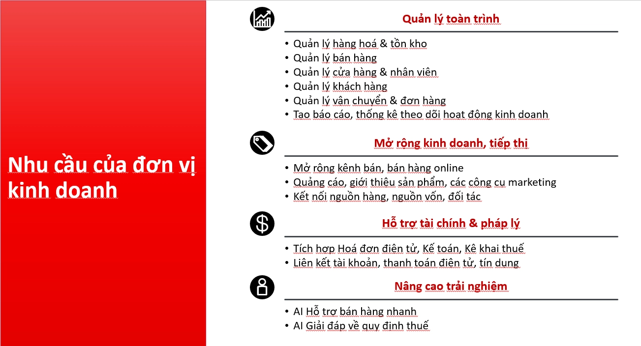 – Tích hợp AI hỗ trợ hỏi đáp thuế, bán hàng nhanh,…