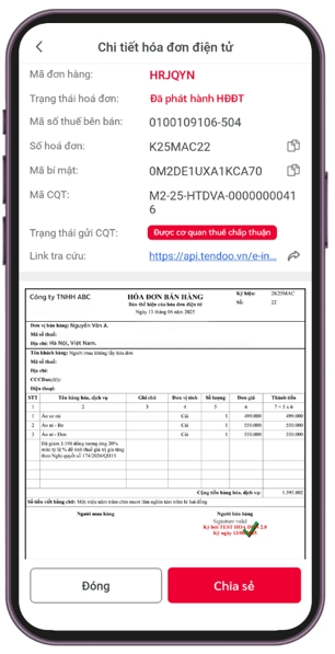 – Tích hợp Hoá đơn điện tử, Cho phép xuất hoá đơn trực tiếp tới cơ quan thuế