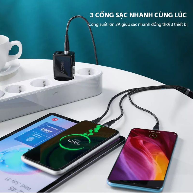 • 3 cổng sạc Lightning/Type-C/Micro USB