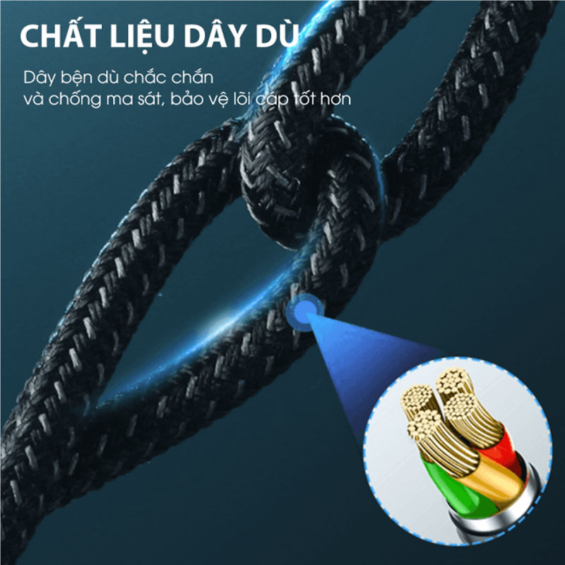 – Chất liệu dây bện dù bền bỉ chống rối, chiều dài 1.2m.