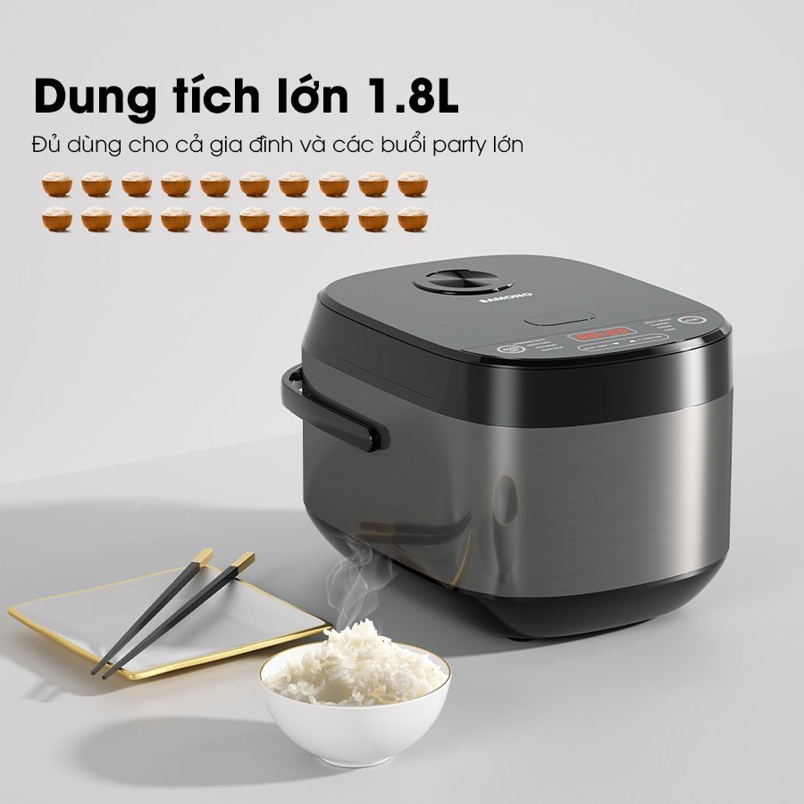 Dung tích 1.8L phù hợp với gia đình lớn từ 6-8 người hoặc các buổi party cần nấu nhiều món khác.
